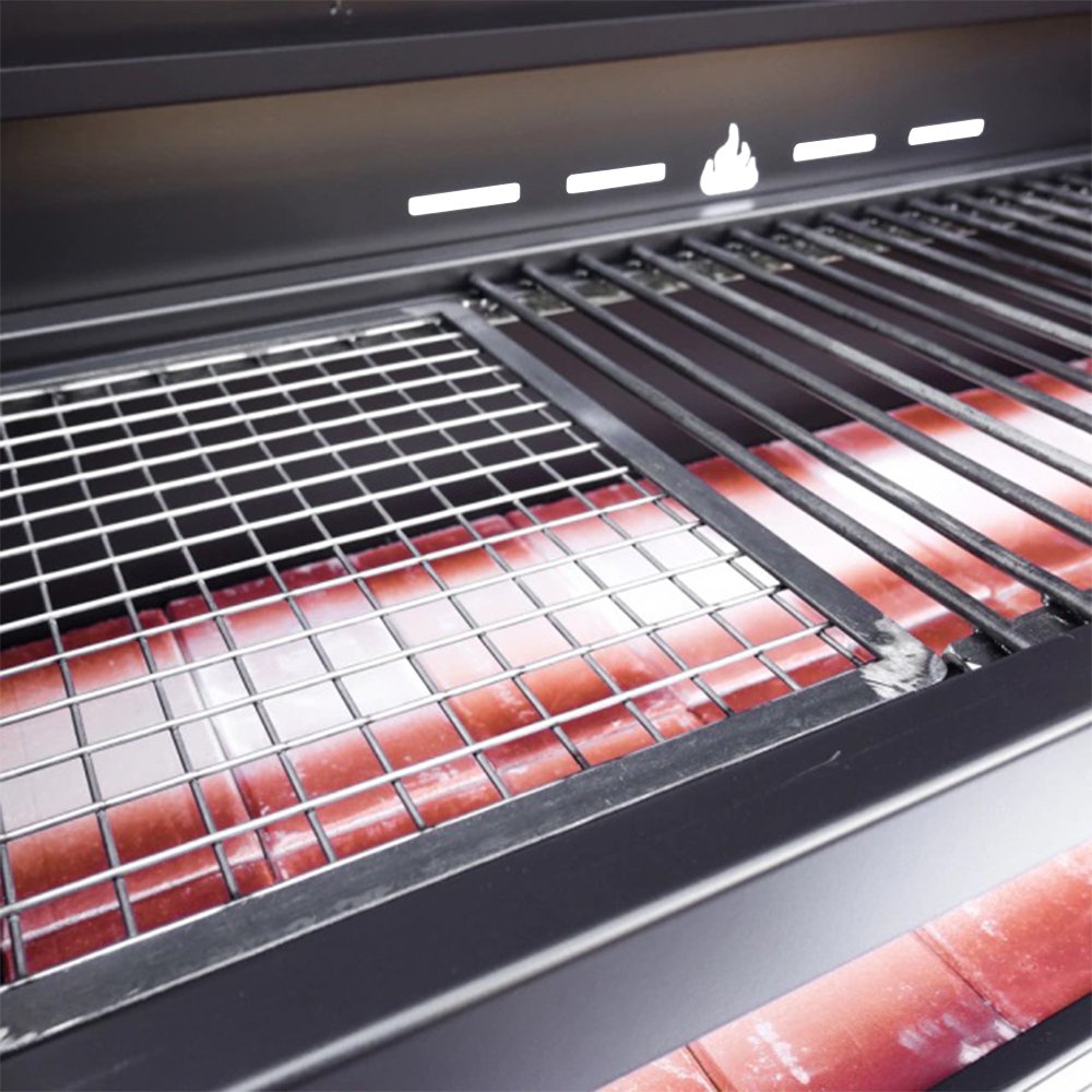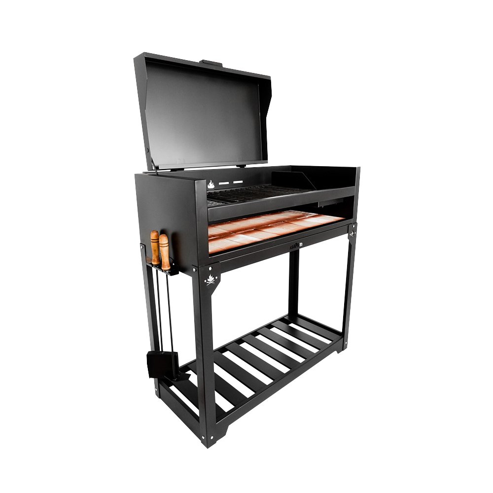 Únicamente el enrejado de la parrilla es de hierro crudo, la comida no puede estar en contacto directo con la pintura.