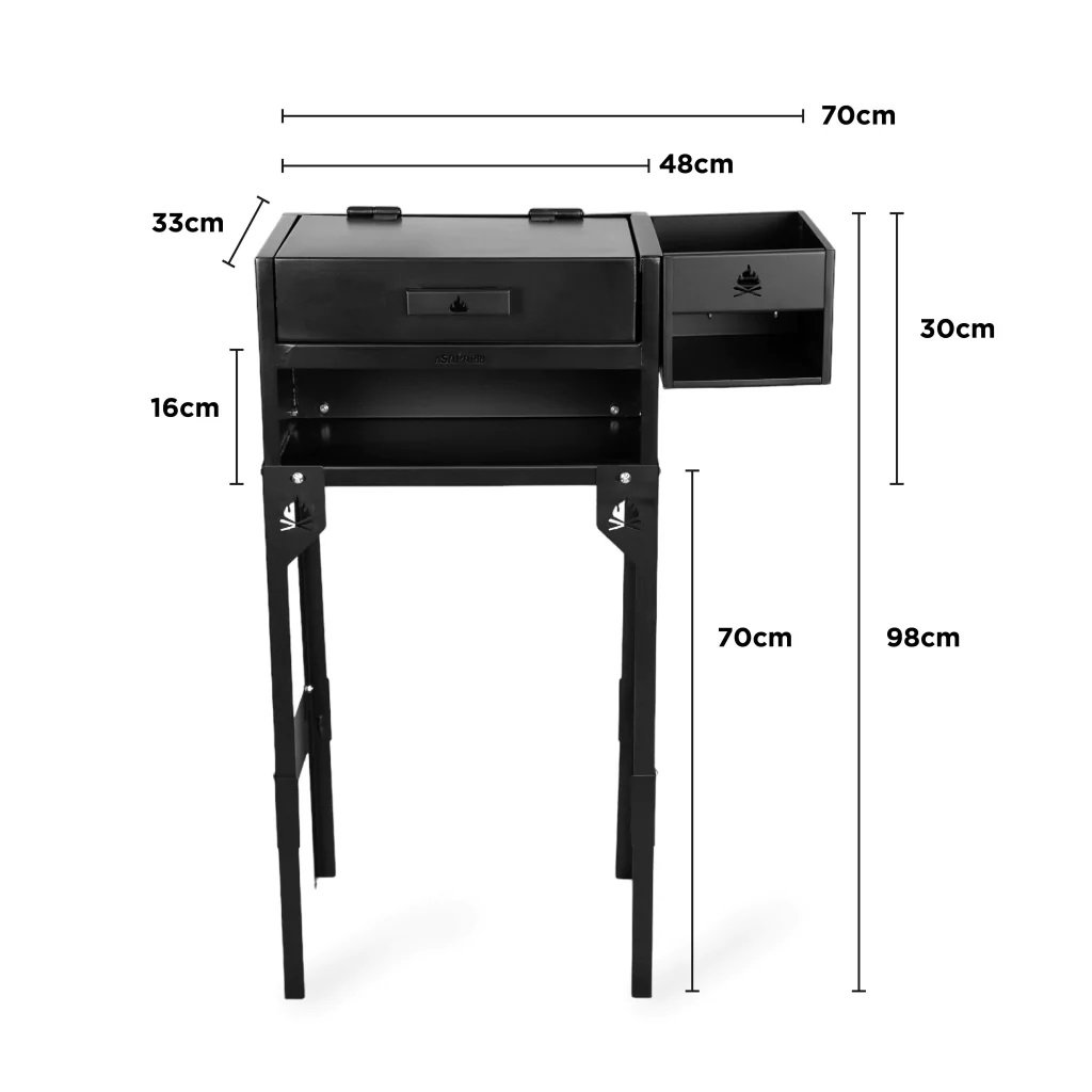 *Si lo vas a deja fijo, te recomendamos como todas nuestras parrillas cubrirlo de la lluvia, la funda del «Brasero de pie» le calza perfecto guardando su brasero dentro del cuerpo, así que es una excelente opción para proteger tu Chulenguito si lo vas a dejar armado.