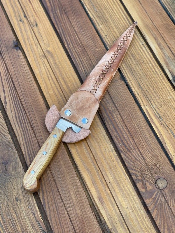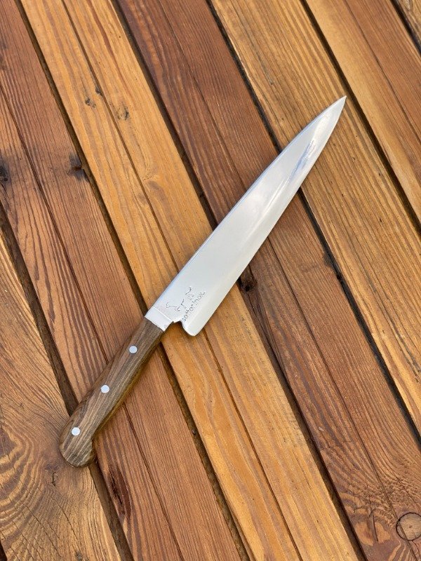 DESCRIPCIÓN: Cuchillo artesanal, fabricado en Argentina. Posee una hoja en acero inoxidable 498 con templado y pulido espejo.
