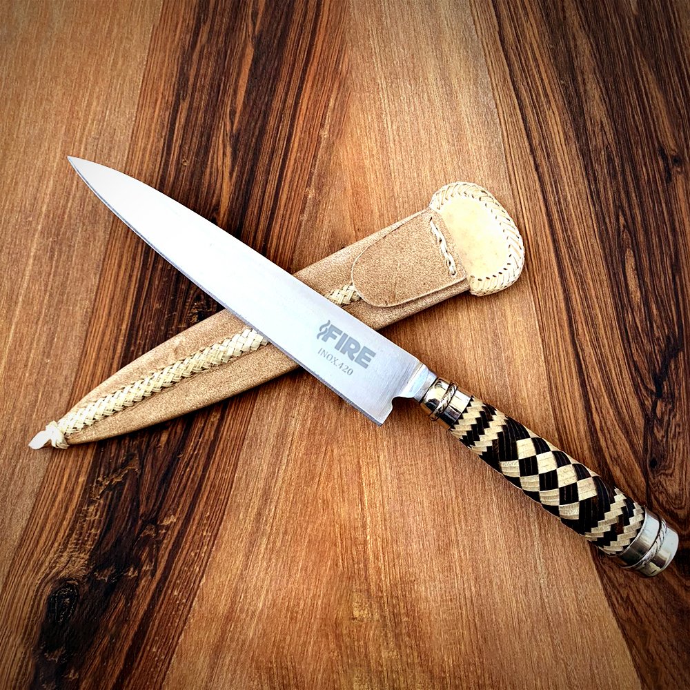CUCHILLO FIRE INOX TRENZADO TIENTO BICOLOR