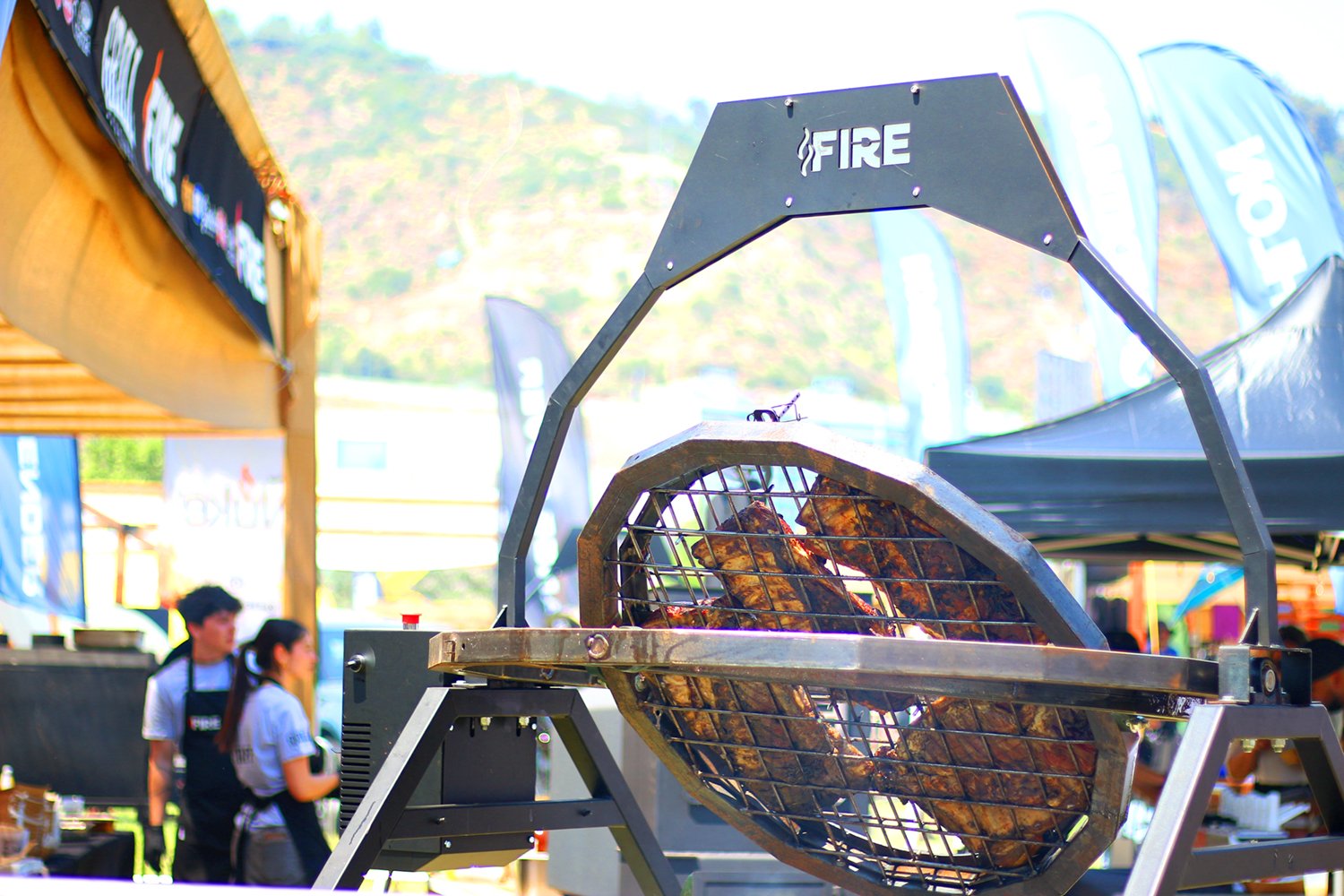Parrilla innovadora que cocina la carne en movimiento circular continuo, manteniéndola jugosa y sin goteos. Su diseño inspirado en el giroscopio aporta un impacto visual único, convirtiéndose en el centro de atención de cualquier