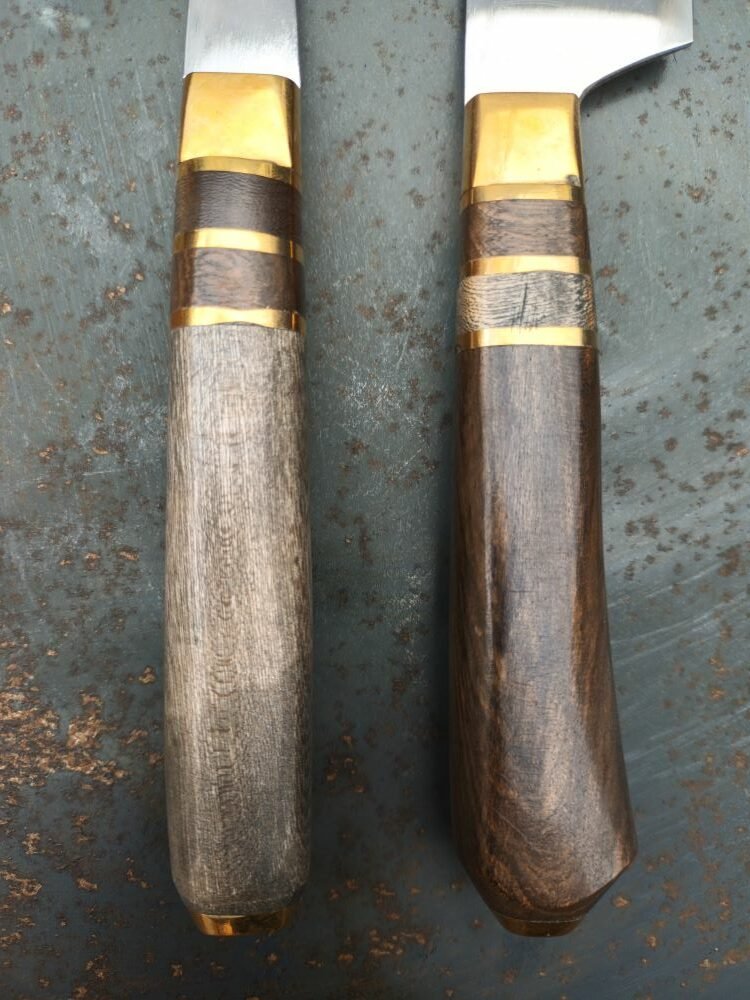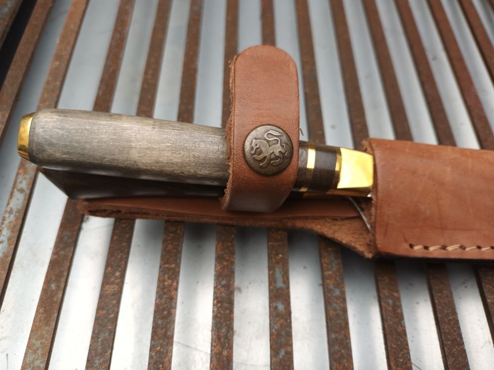 Hoja en acero al carbono 1045,  con templado, revenido y pulido espejo.