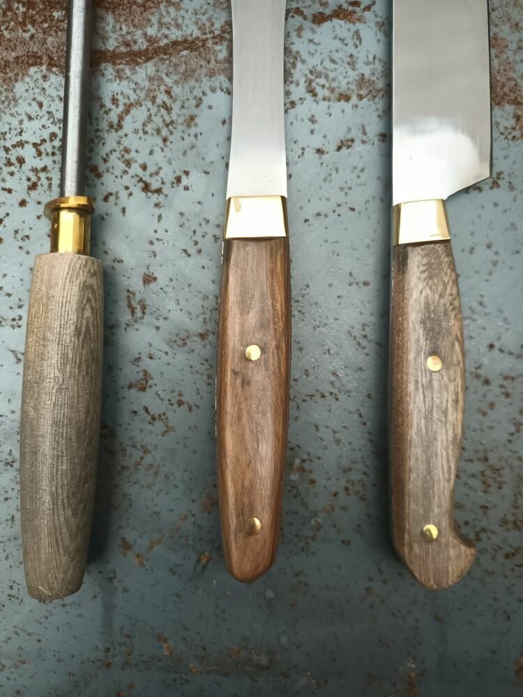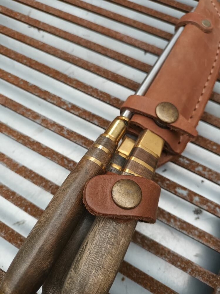 Hoja en acero al carbono 1045, con templado, revenido y pulido espejo.