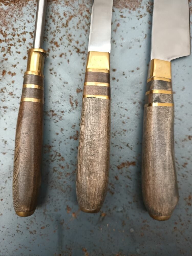 Modelo: Juego Asador de 3 piezas, en tamaños de 14 y 18 cm. Compuesto de Tenedor, Cuchillo y Astil.