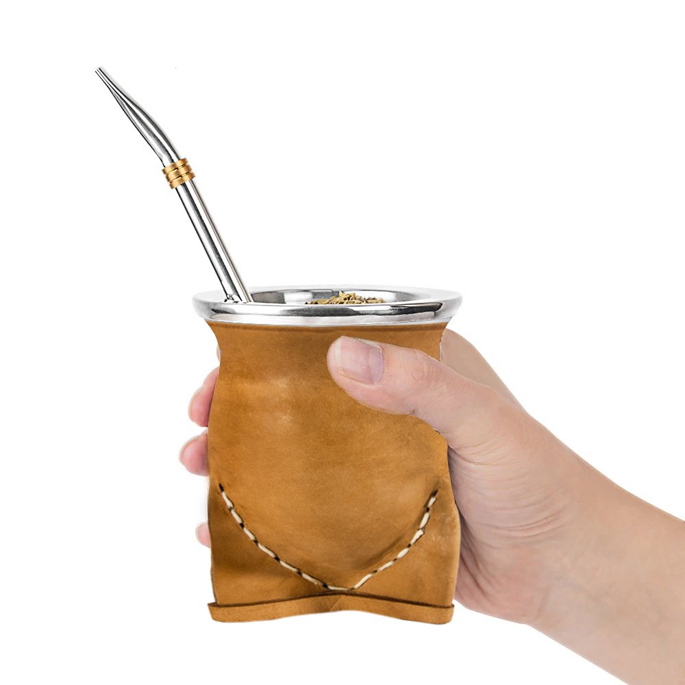 MATE CALABAZA CUERO – CRUDO C/BOMBILLA
