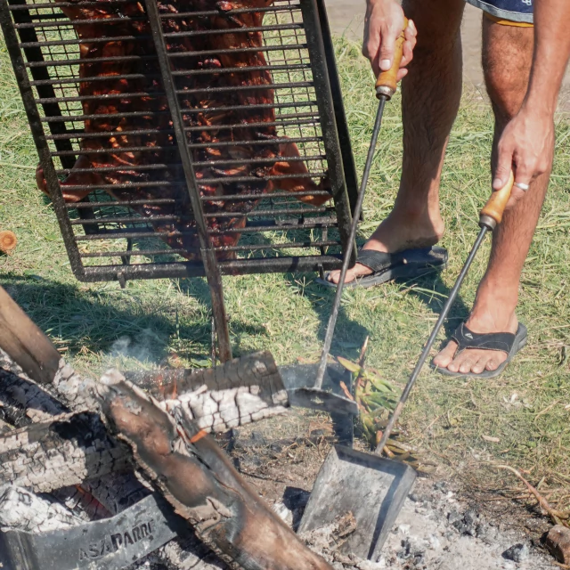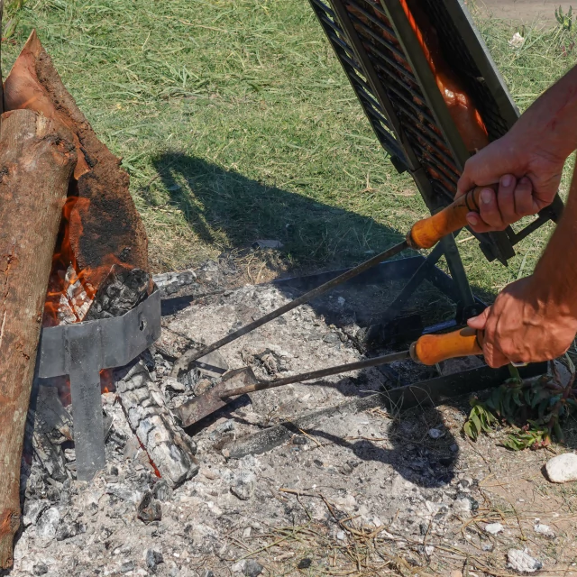 Utiliza el atizador para acercar las brasas a nuestra pala o usalos por separado.