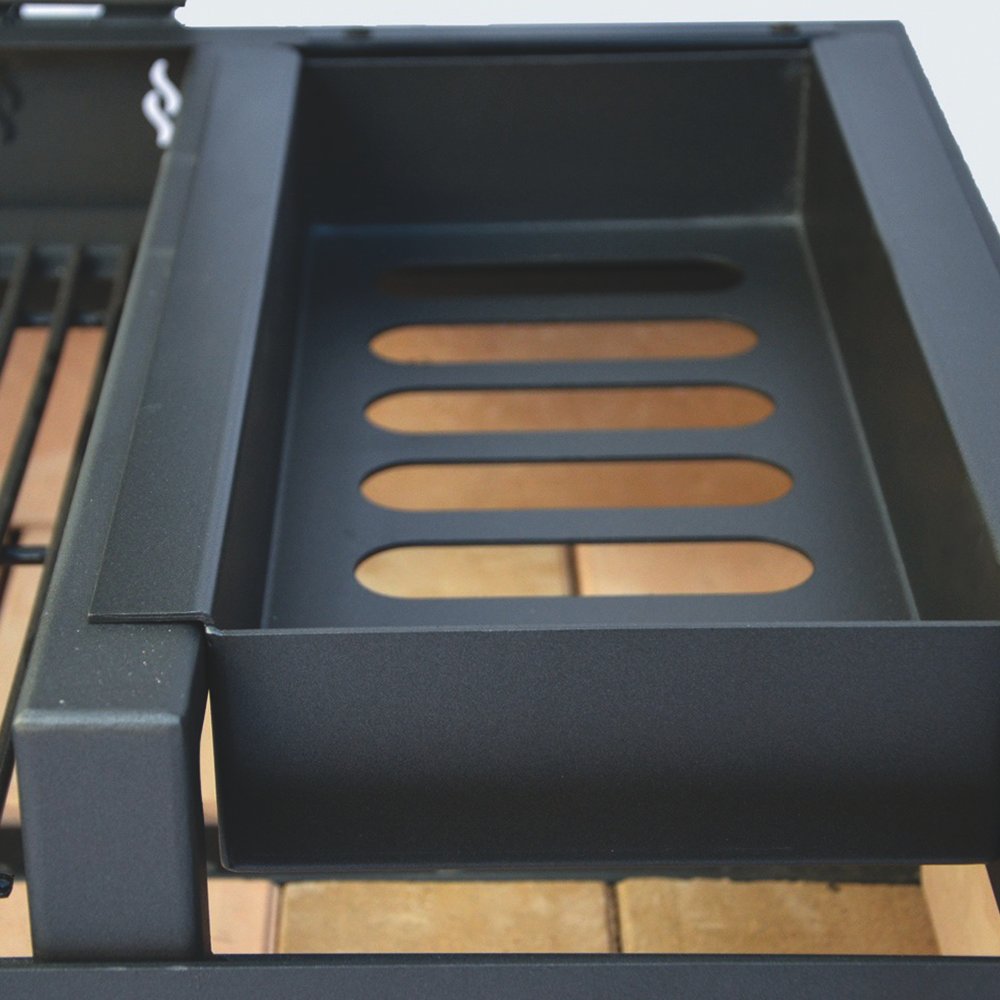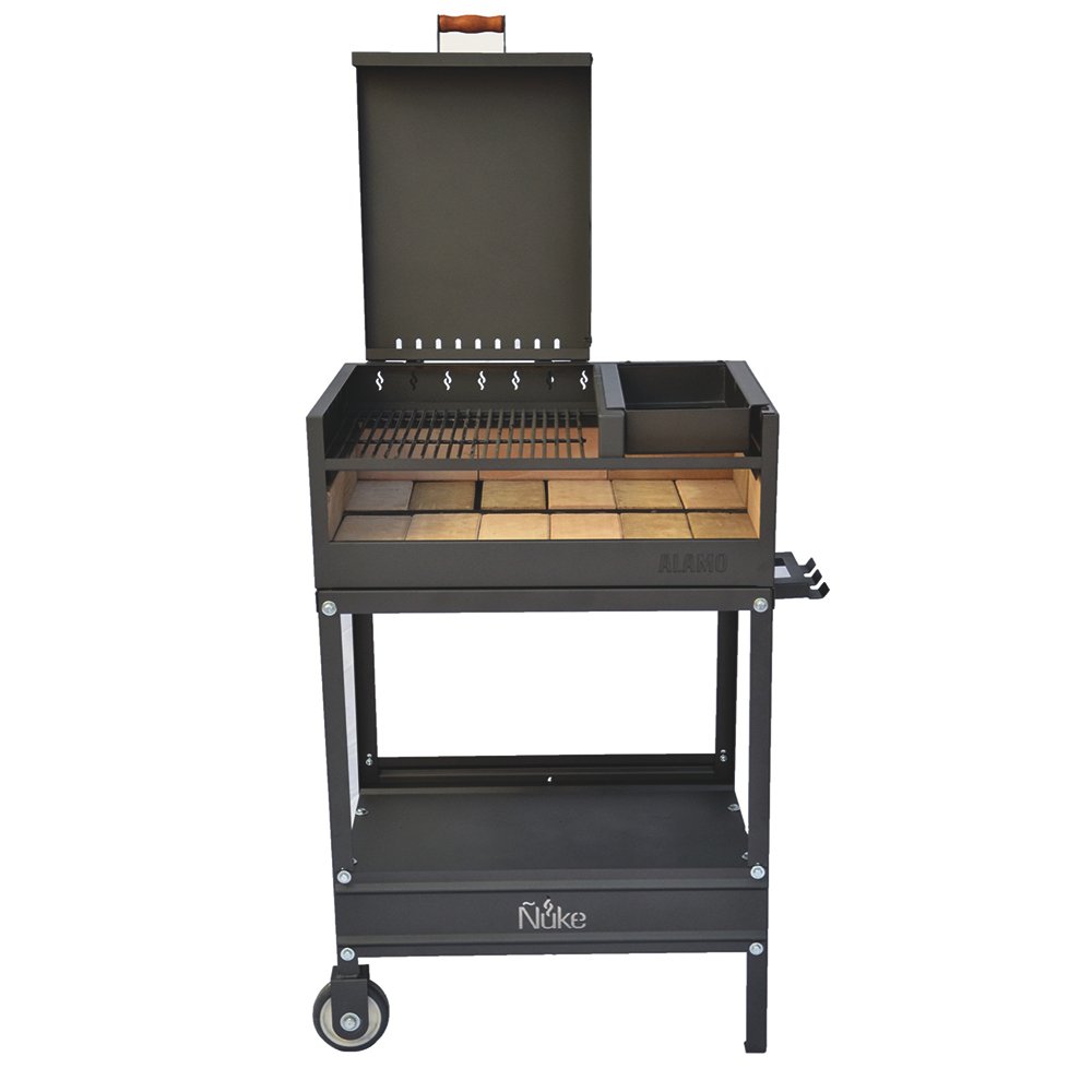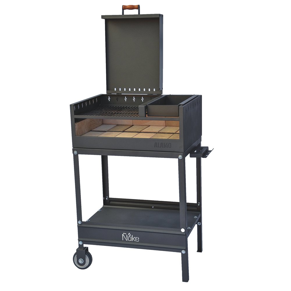 Posee una tapa adicional para cocinar cualquier tipo de carne y brasero desmontable y lugar debajo de la parrilla para apoyar lo que quieras.