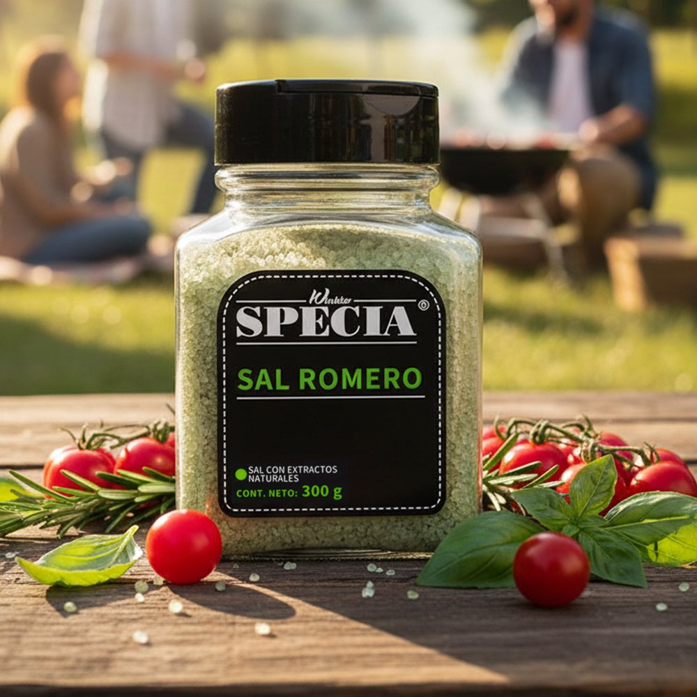 300gr. SPECIA Ingredientes: Sal yodada 98.2%, romero 1.2%, carbonato de calcio, dióxido de silice, extracto natural de espinaca.