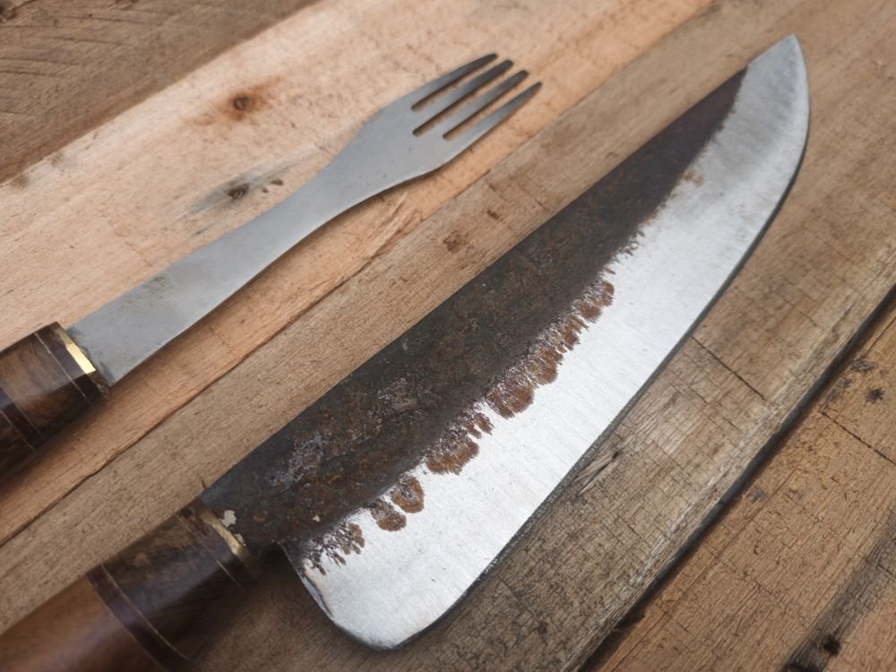 SET DE CUBIERTOS ARTESANAL, EN ACERO AL CARBONO TEMPLADO.