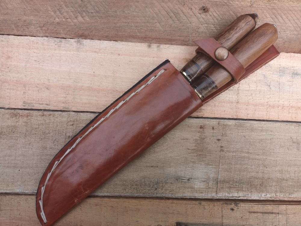 - Juego de diseño y confección tradicional. Hechos a partir de discos de arado, lo que le otorga una dureza especial a la hoja. Con mango de madera y terminación rústica. Una excelente hoja para agregar a una colección, usar en una parrillada o en el camping.