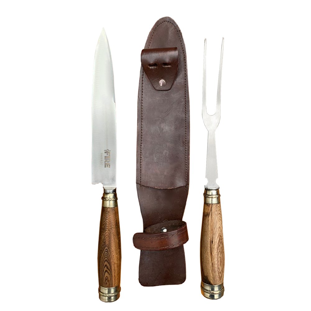 HOJA : Acero Inoxidable 420 Templado. TAMAÑOSDE HOJA : 20 Cm. VAINA : Cuero Café Oscuro. MANGO:Roseta/Asta de ciervo/Madera alpaca. MARCA:FIRE.